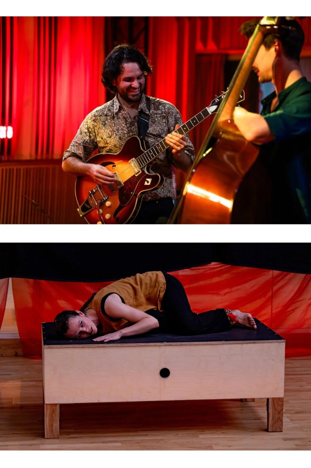 Amber verweeft haar achtergrond in klassieke Indiase en hedendaagse dans tot een persoonlijke bewegingstaal, geïnspireerd door Shiva als Nataraja – de kosmische danser. Arnaud creëert live klanklandschappen met looppedalen, meerdere instrumenten en een zelfgebouwde bascello-installatie, waarbij hij ook geluiden uit de omgeving opneemt.